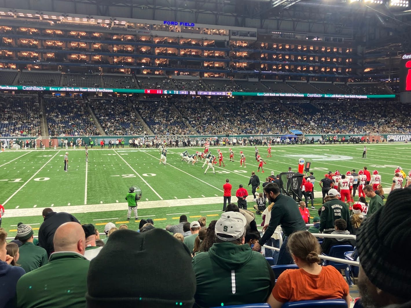 Recently, I scored free tickets to a college football game at Ford Field, where the Detroit Lions play. Again, the tickets were free. I still spent a small fortune. How is this sustainable or enjoyable for anyone?